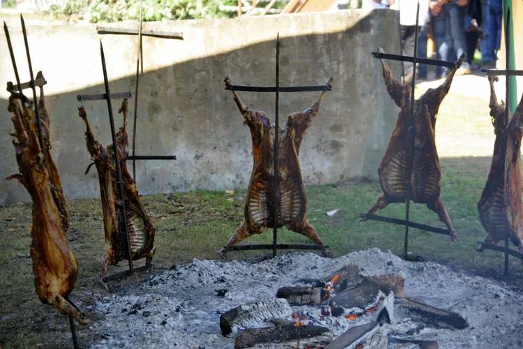 Cordero a la estaca. Ingredientes: Medio litro de agua Medio litro de vinagre Medio litro de aceite Medio litro de vino blanco El jugo de un limón Una cebolla Una cabeza de ajo Un poco de perejil Laurel Pimentón dulce y picante (poca cantidad) Sal Preparación: Se ponen, una vez cocidos todos estos ingredientes, en una botella tapada con un corcho y atravesado éste por una paja. Se abre el cordero en canal, se atraviesa de arri ...